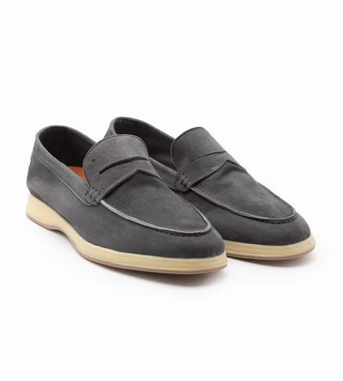 Mocassino estivo da uomo in pelle scamosciata effetto velluto (“Soft Emotions” cachemire) color park avenue, made in Toscana